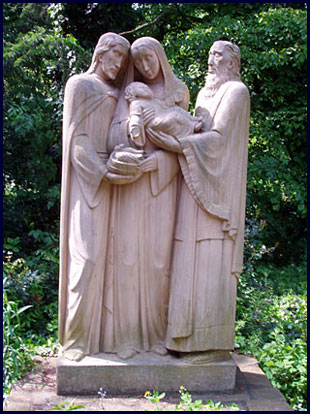 A similar attitude can also be seen in the most massive religious cycle that he could make in 1951 and 1952 for the church garden behind the O.-L.-Vrouw-Ten-Traan church in Kalfort (Puurs). The fifteen groups of the Rosary are chiselled in blocks of euville stone and shape the five Joyful, Sorrowful and Glorious Mysteries. The figuration is both true-to-nature and styled. Here too, the becoming internalised and the sublimation of the emotion are concentrated in the metaphysics of the face.